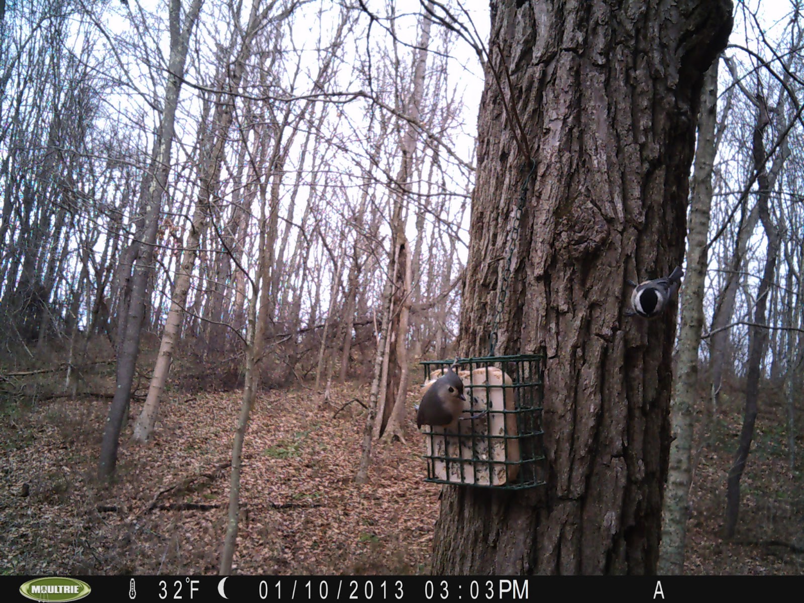 Enough deer photos for a while - how about some visitors to a suet cake in the woods?